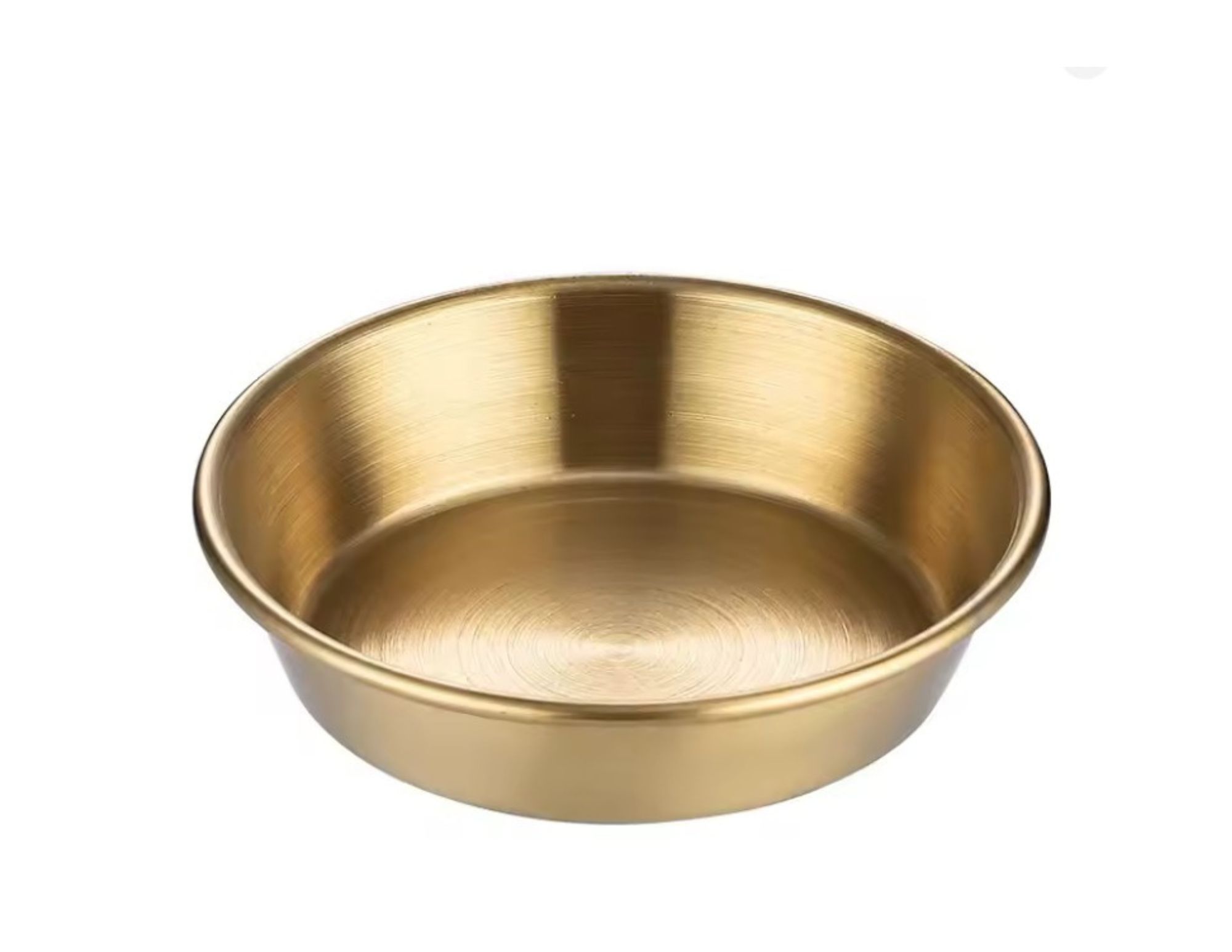 Plato Dorado redondo y hondo, especial para tapas de aceitunas y encurtidos, aunque también se puede usar para salsas. Cuenco de acero inoxidable.