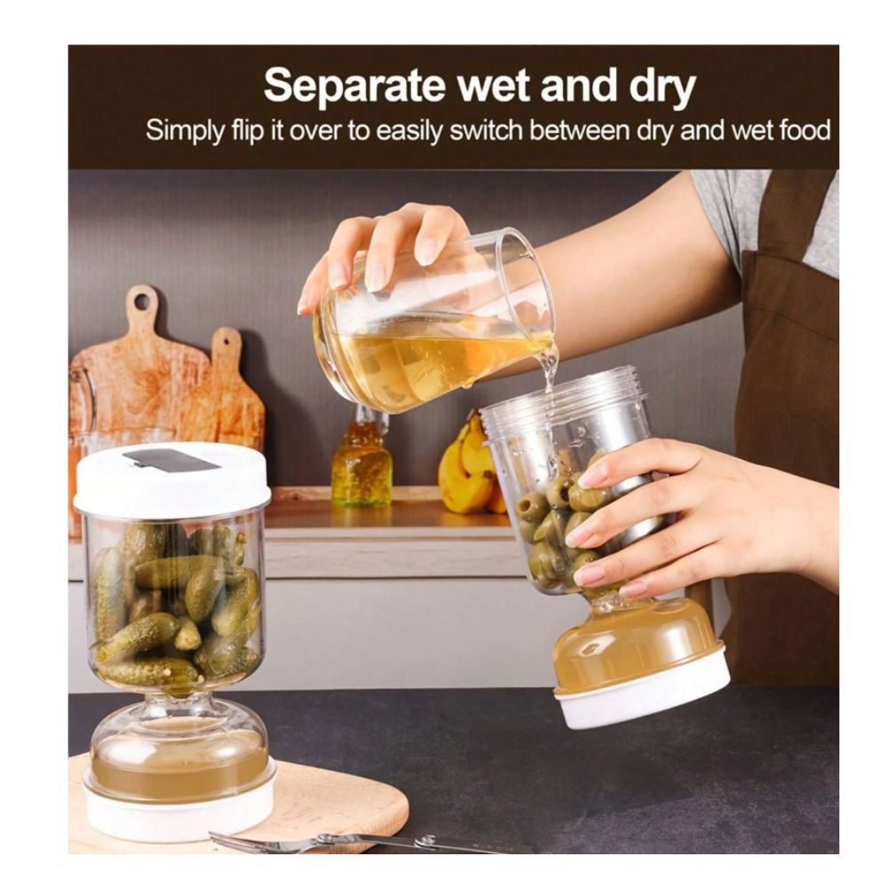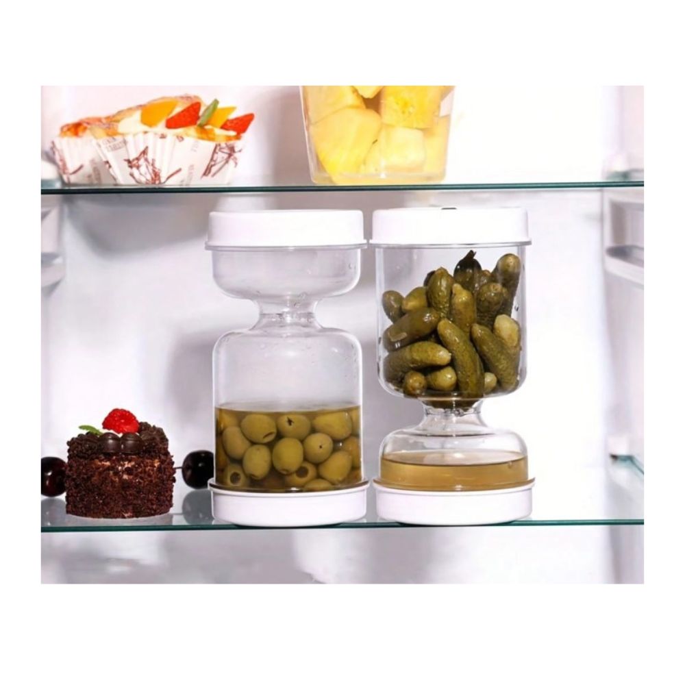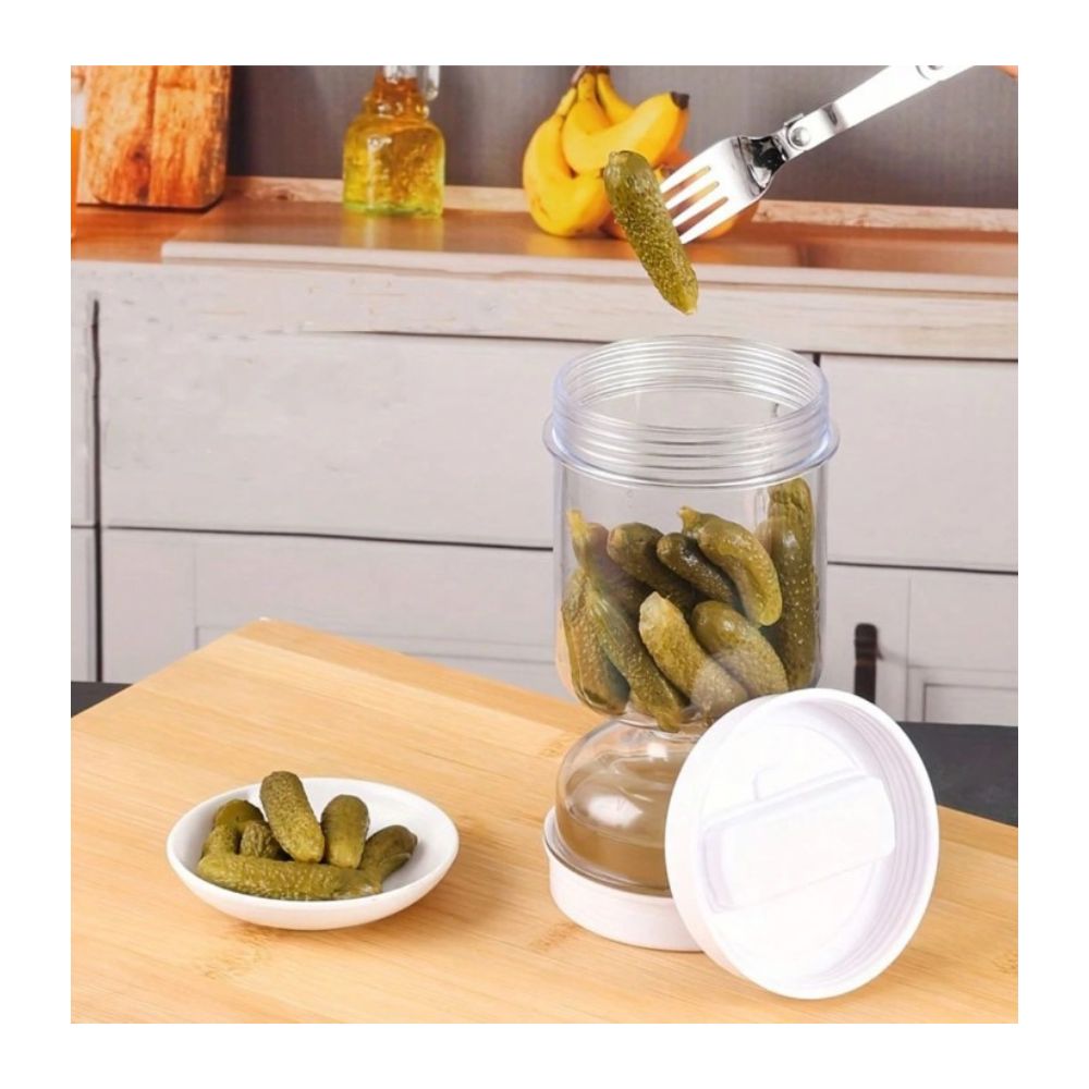 Con una abertura estrecha en el medio, el encurtido no puede pasar, por lo que el Pepinillo se puede separar del jugo y es fácil de cambiar dándole la vuelta. Puede conservar y encurtir mejor los alimentos, y el líquido no se derramará cuando esté boca abajo.